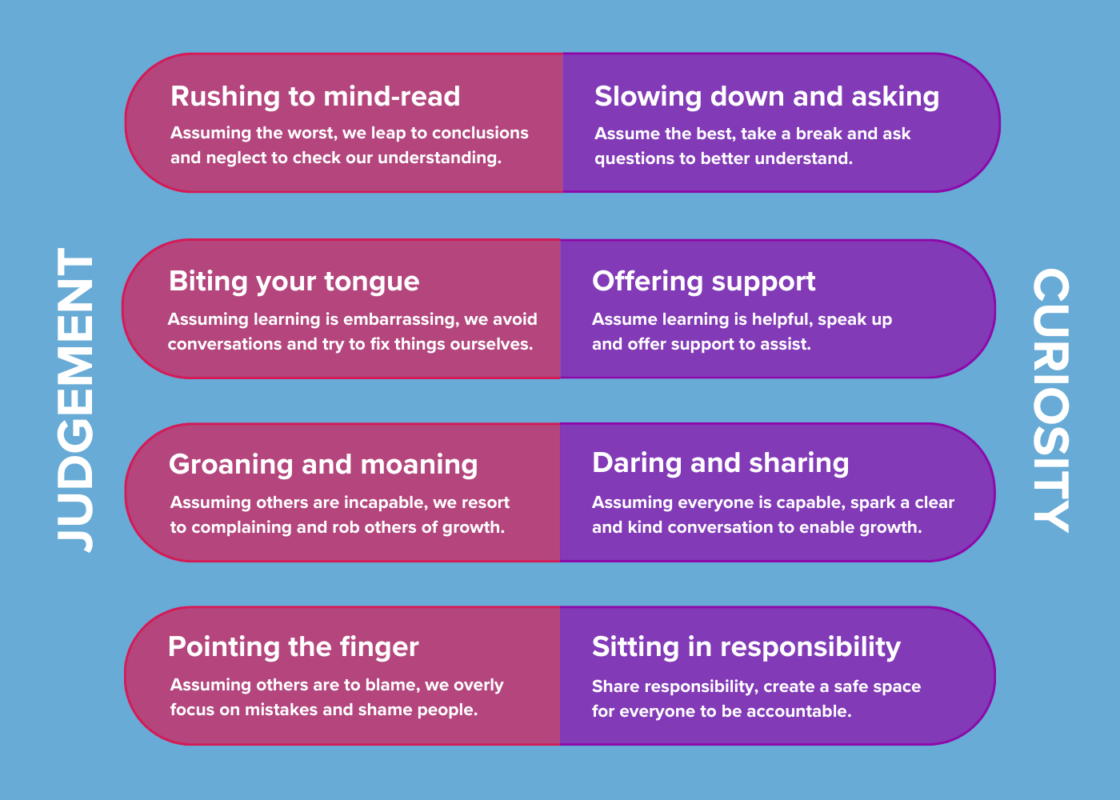 In order to effectively identify and address the psychosocial hazards that employees are experiencing, leaders have a responsibility to cultivate an environment where hazards are collaboratively recognised and handled. This requires helping your people shift from a blame culture to a culture of curiosity.