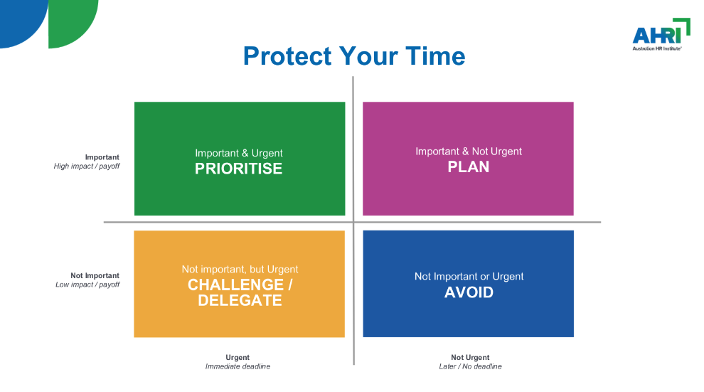 - Empower people to decline low-priority meetings and group high-priority meetings together to free up consistent focus time in people’s diaries. You can use the matrix below to help employees make this decision.